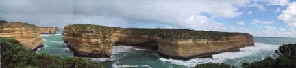 To our great surprise, the weather had followed us all the way from the old continent and instead of "stubbies and singlets" we spent our time cowering from the icy wind and drizzle in the only warm clothes we had brought along. Needless to say that after 24 hours of flying walking around Melbourne at 5 o'clock in the morning trying to find a decent hotel, visiting Melbourne CBD on foot and then driving down the GOR, our travel clothes were in need of a serious airing out. Nonetheless, I have to say that standing above the Twelve Apostles quickly makes you forget everything else for a moment. The word Breathtaking is probably the easiest description. Our only disappointment was the grey skies and resulting flat light that took a lot of the "Wagner" out of the images. This was one of those moments where we had a kind thought for Judys recommendation to me (I think it was about 15 years ago on Straddie) to "take a picture with my mind". fter a bit of hunting around, we found a charming little cottage for the night in Port Campbell kept by a cheerful young couple and their cute little daughter. The view from the cottage down the valley, across the village to the sea was splendid and, under the circumstances, we particularly appreciated the reverse-cycle air-conditioning that kept us warm for the night.